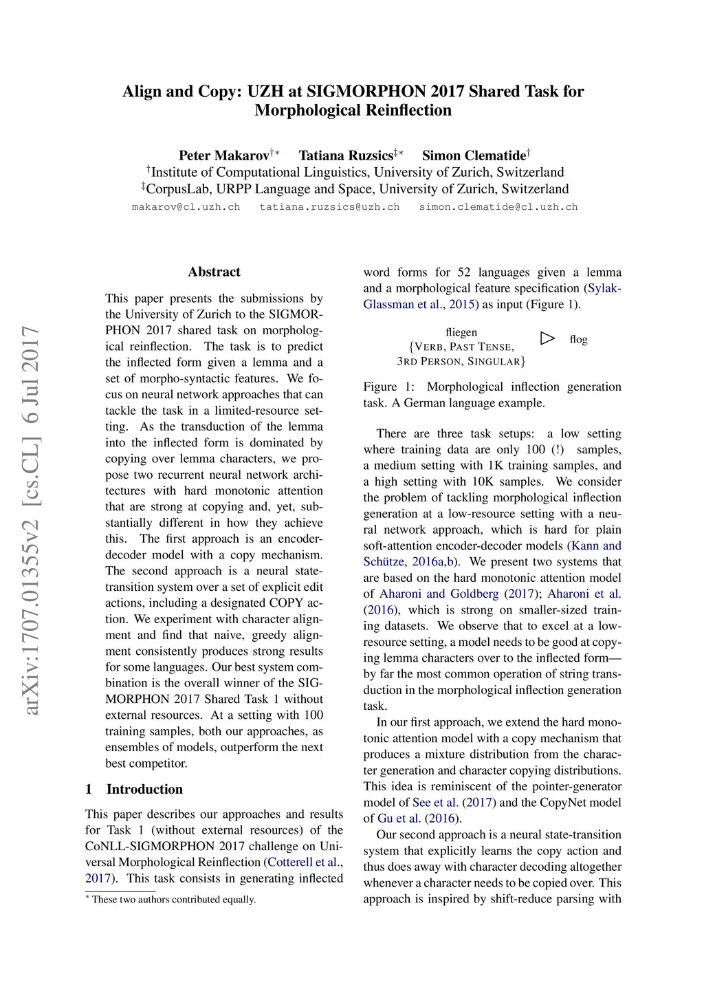 Align and Copy: UZH at SIGMORPHON 2017 Shared Task for Morphological