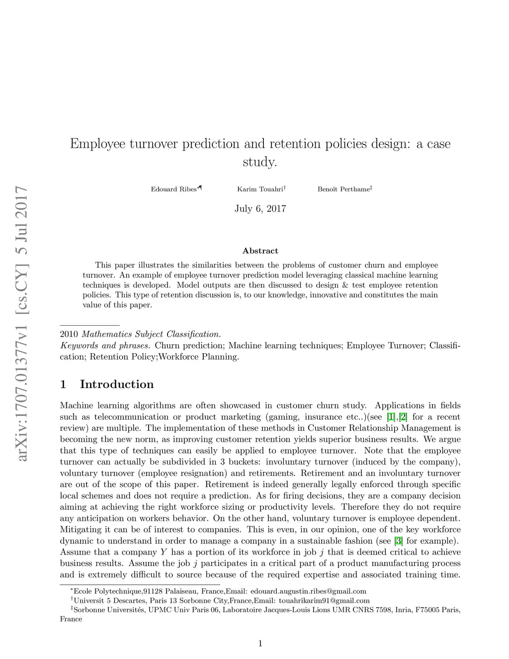 Employee turnover prediction and retention policies design: a case study