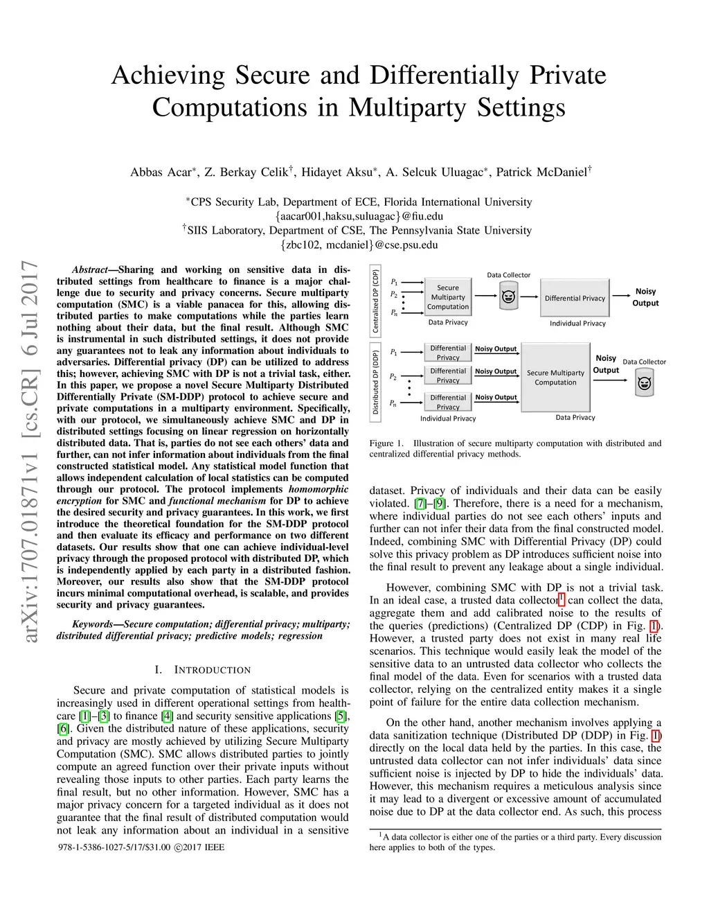 Achieving Secure and Differentially Private Computations in Multiparty