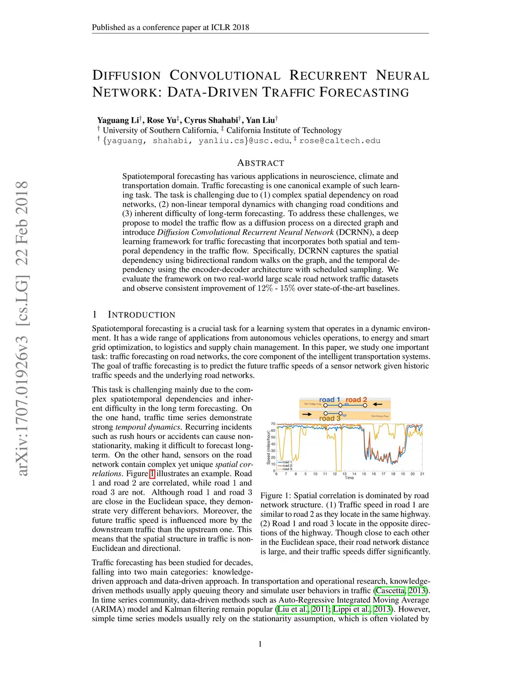 Diffusion Convolutional Recurrent Neural Network: Data-Driven Traffic