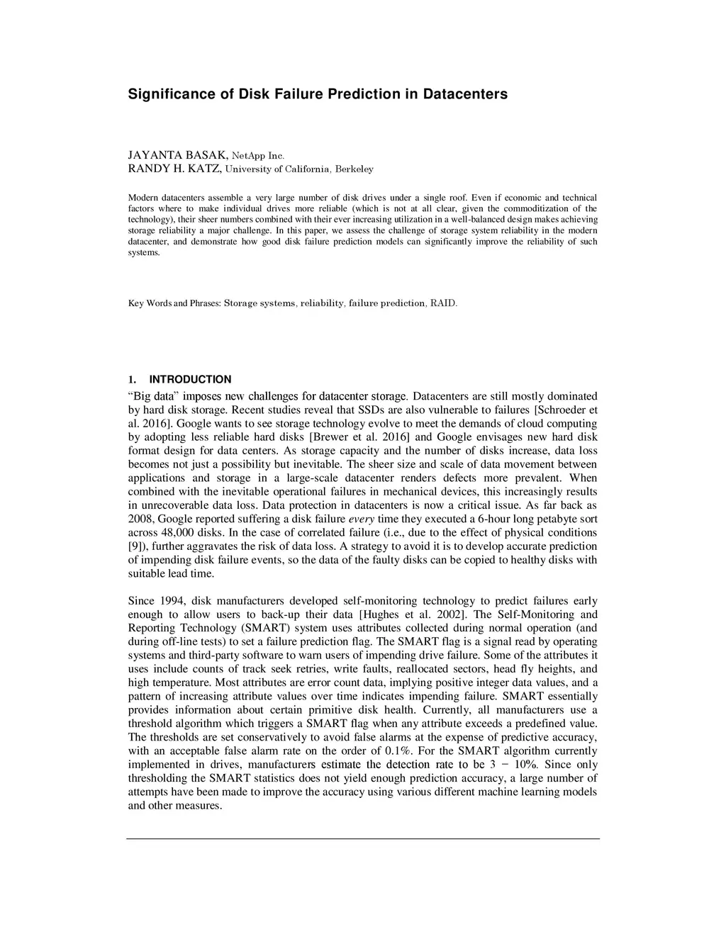 Significance of Disk Failure Prediction in Datacenters