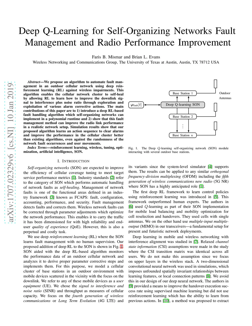 Deep Q-Learning for Self-Organizing Networks Fault Management and Radio