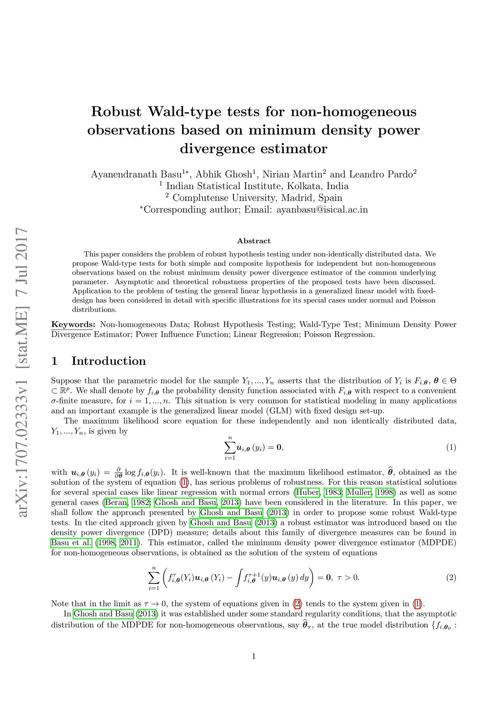 density power divergence estimator