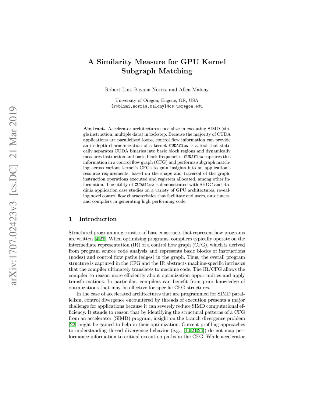 A Similarity Measure for GPU Kernel Subgraph Matching