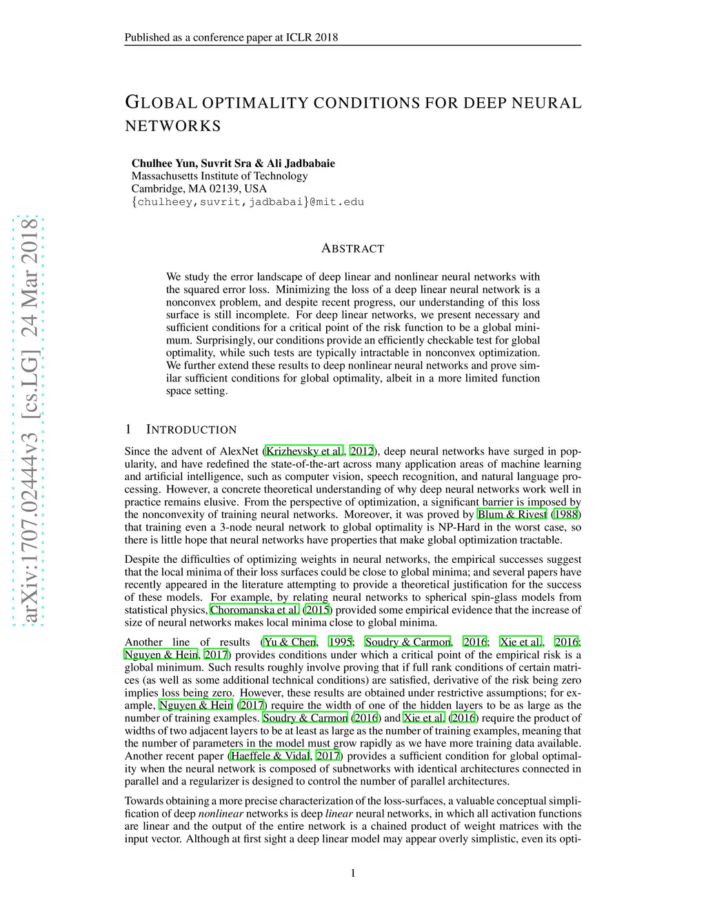 Global optimality conditions for deep neural networks