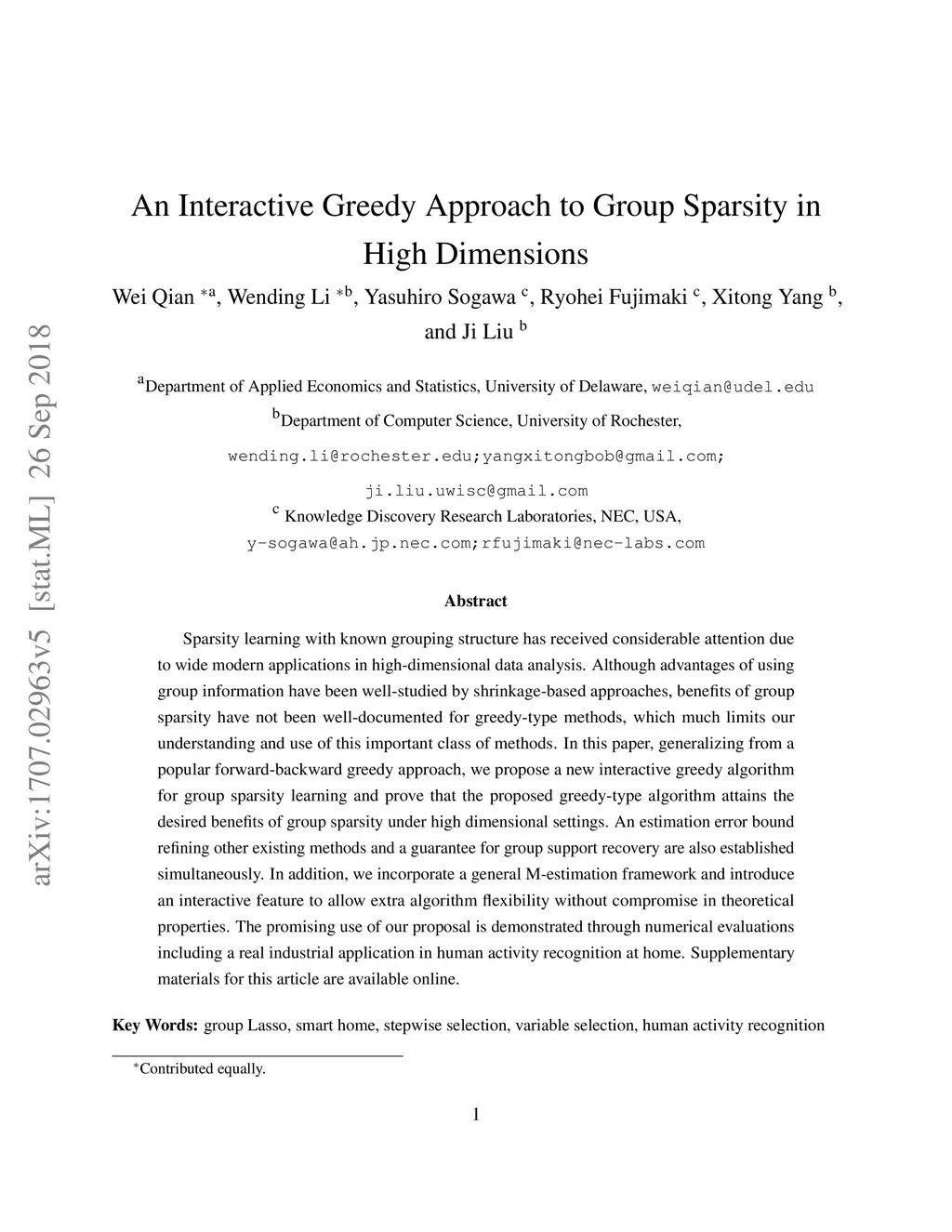An Interactive Greedy Approach to Group Sparsity in High Dimensions