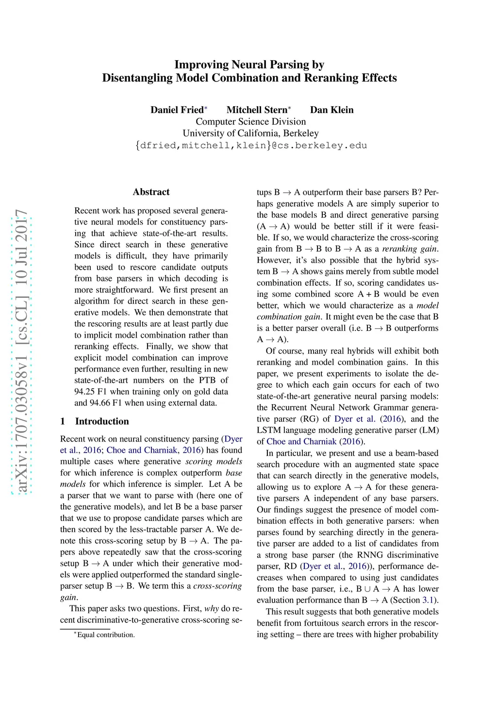 Improving Neural Parsing by Disentangling Model Combination and