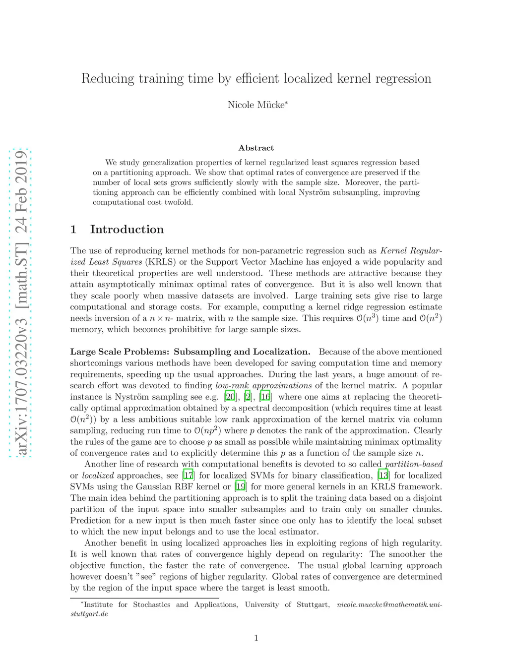 We consider a localized approach in the well-established setting of reproducing kernel learning under random design. The input space is partitioned into local disjoint subsets () equipped with a local reproducing kernel . It is then straightforward to define local KRR estimates. Our first main contribution is in showing that minimax optimal rates of convergence are preserved if the number of partitions grows sufficiently slowly with the sample size, under locally different degrees on smoothness assumptions on the regression function. As a byproduct, we show that low smoothness on exceptional sets of small probability does not contribute, leading to a faster rate of convergence. Our second contribution lies in showing that the partitioning approach for KRR can be efficiently combined with local Nystr\"om subsampling, improving computational cost twofold. If the number of locally subsampled inputs grows sufficiently fast with the sample size, minimax optimal rates of convergence are maintained.