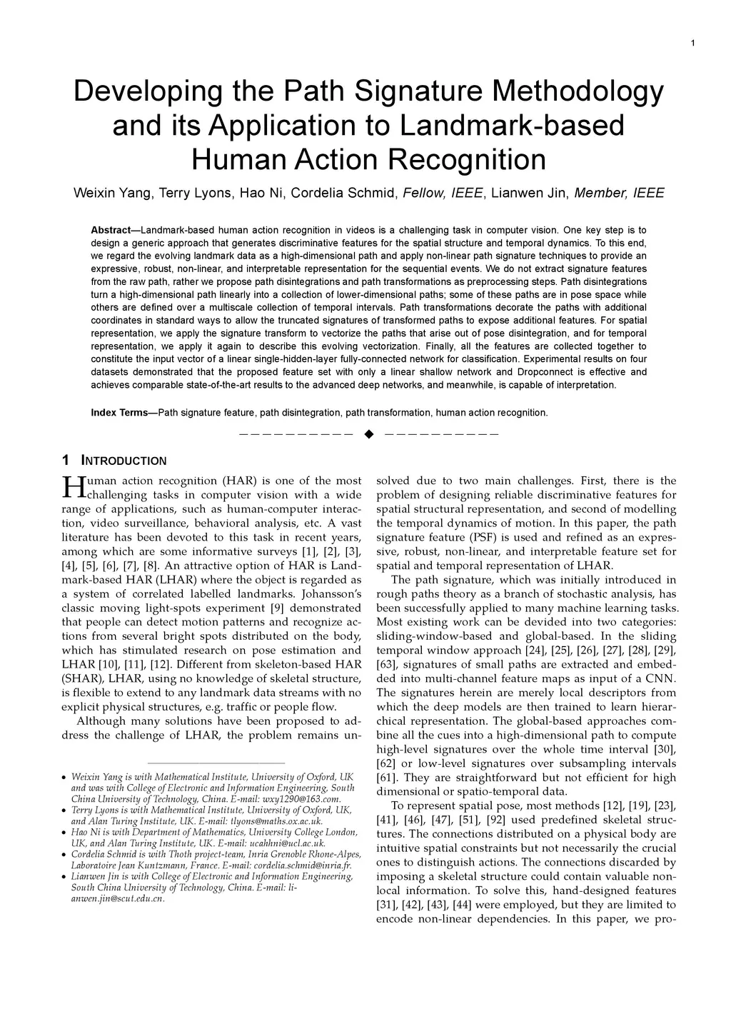 Landmark-based human action recognition in videos is a challenging task in computer vision. One key step is to design a generic approach that generates discriminative features for the spatial structure and temporal dynamics. To this end, we regard the evolving landmark data as a high-dimensional path and apply non-linear path signature techniques to provide an expressive, robust, non-linear, and interpretable representation for the sequential events. We do not extract signature features from the raw path, rather we propose path disintegrations and path transformations as preprocessing steps. Path disintegrations turn a high-dimensional path linearly into a collection of lower-dimensional paths; some of these paths are in pose space while others are defined over a multiscale collection of temporal intervals. Path transformations decorate the paths with additional coordinates in standard ways to allow the truncated signatures of transformed paths to expose additional features. For spatial representation, we apply the signature transform to vectorize the paths that arise out of pose disintegration, and for temporal representation, we apply it again to describe this evolving vectorization. Finally, all the features are collected together to constitute the input vector of a linear single-hidden-layer fully-connected network for classification. Experimental results on four datasets demonstrated that the proposed feature set with only a linear shallow network and Dropconnect is effective and achieves comparable state-of-the-art results to the advanced deep networks, and meanwhile, is capable of interpretation.