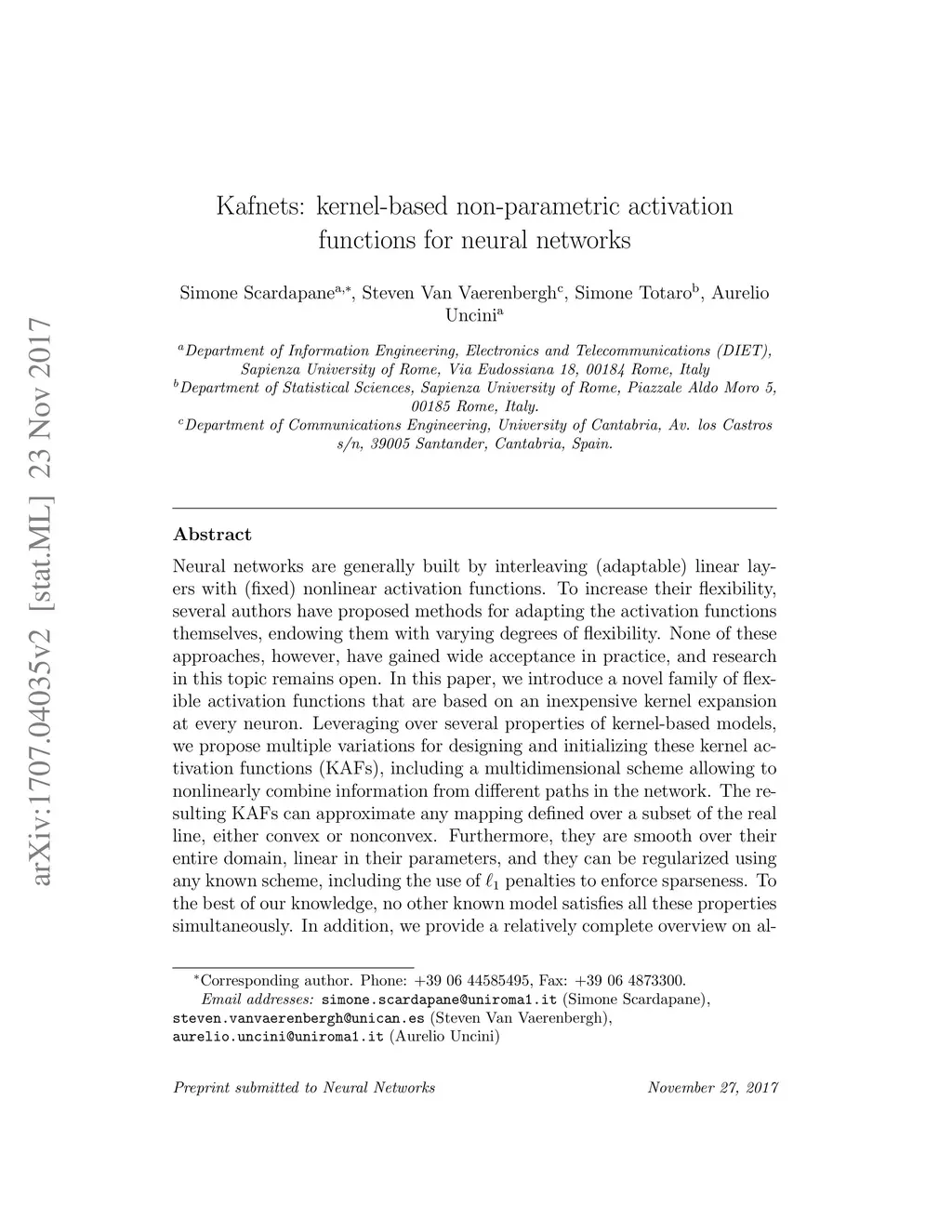 Kafnets: kernel-based non-parametric activation functions for neural