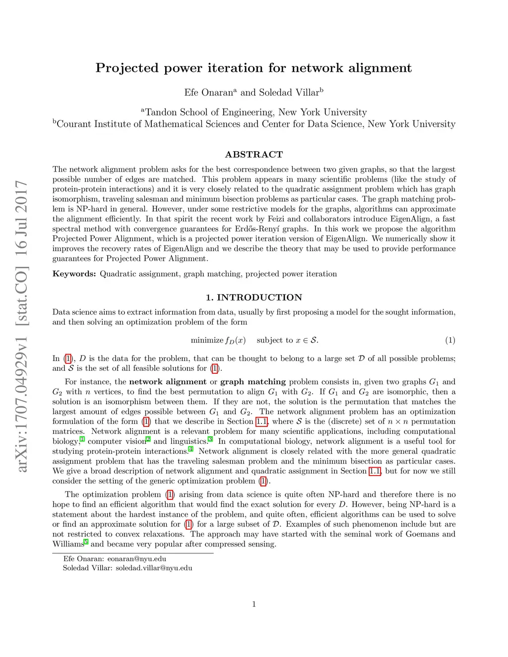 The network alignment problem asks for the best correspondence between two given graphs, so that the largest possible number of edges are matched. This problem appears in many scientific problems (like the study of protein-protein interactions) and it is very closely related to the quadratic assignment problem which has graph isomorphism, traveling salesman and minimum bisection problems as particular cases. The graph matching problem is NP-hard in general. However, under some restrictive models for the graphs, algorithms can approximate the alignment efficiently. In that spirit the recent work by Feizi and collaborators introduce EigenAlign, a fast spectral method with convergence guarantees for Erd\H{o}s-Reny\í graphs. In this work we propose the algorithm Projected Power Alignment, which is a projected power iteration version of EigenAlign. We numerically show it improves the recovery rates of EigenAlign and we describe the theory that may be used to provide performance guarantees for Projected Power Alignment.
