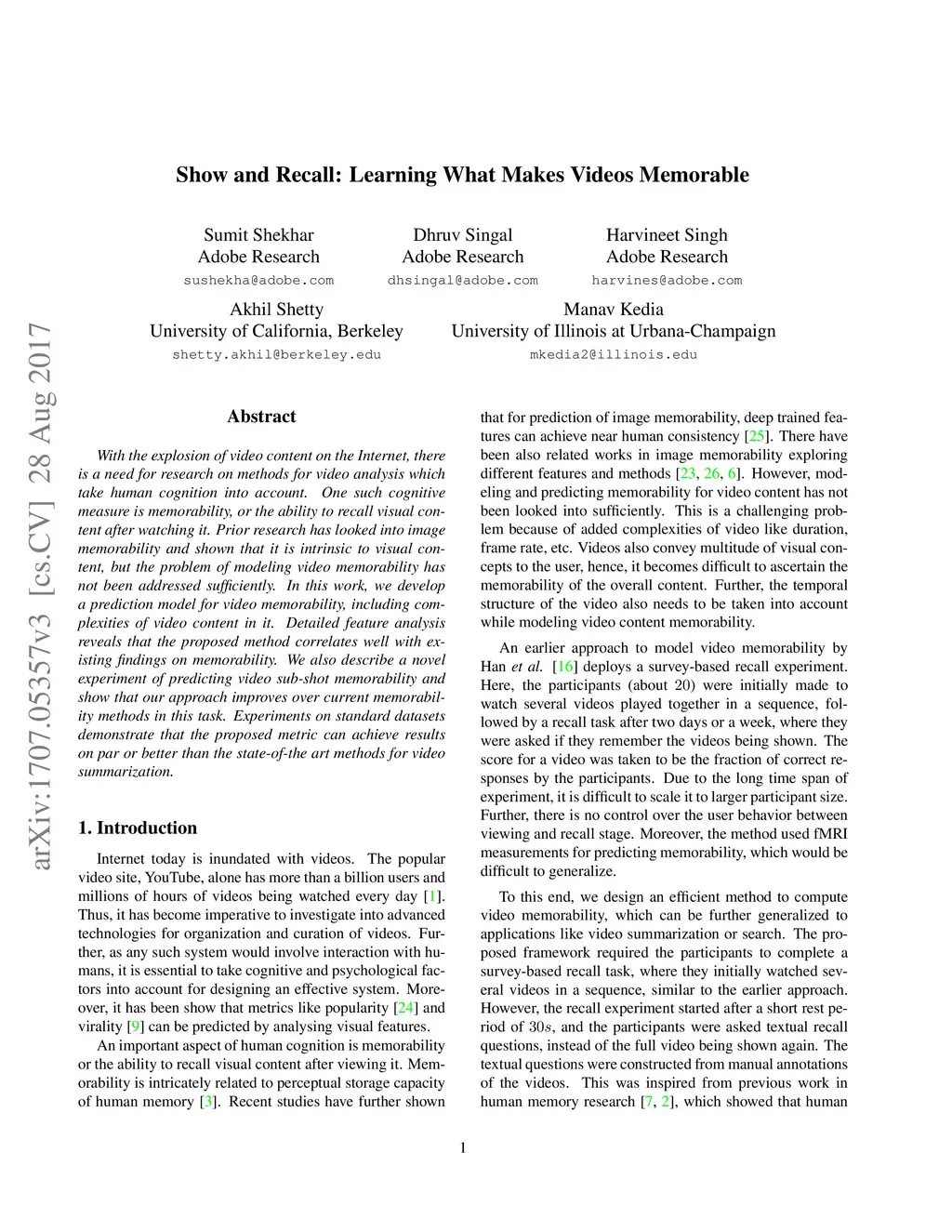 Show and Recall: Learning What Makes Videos Memorable