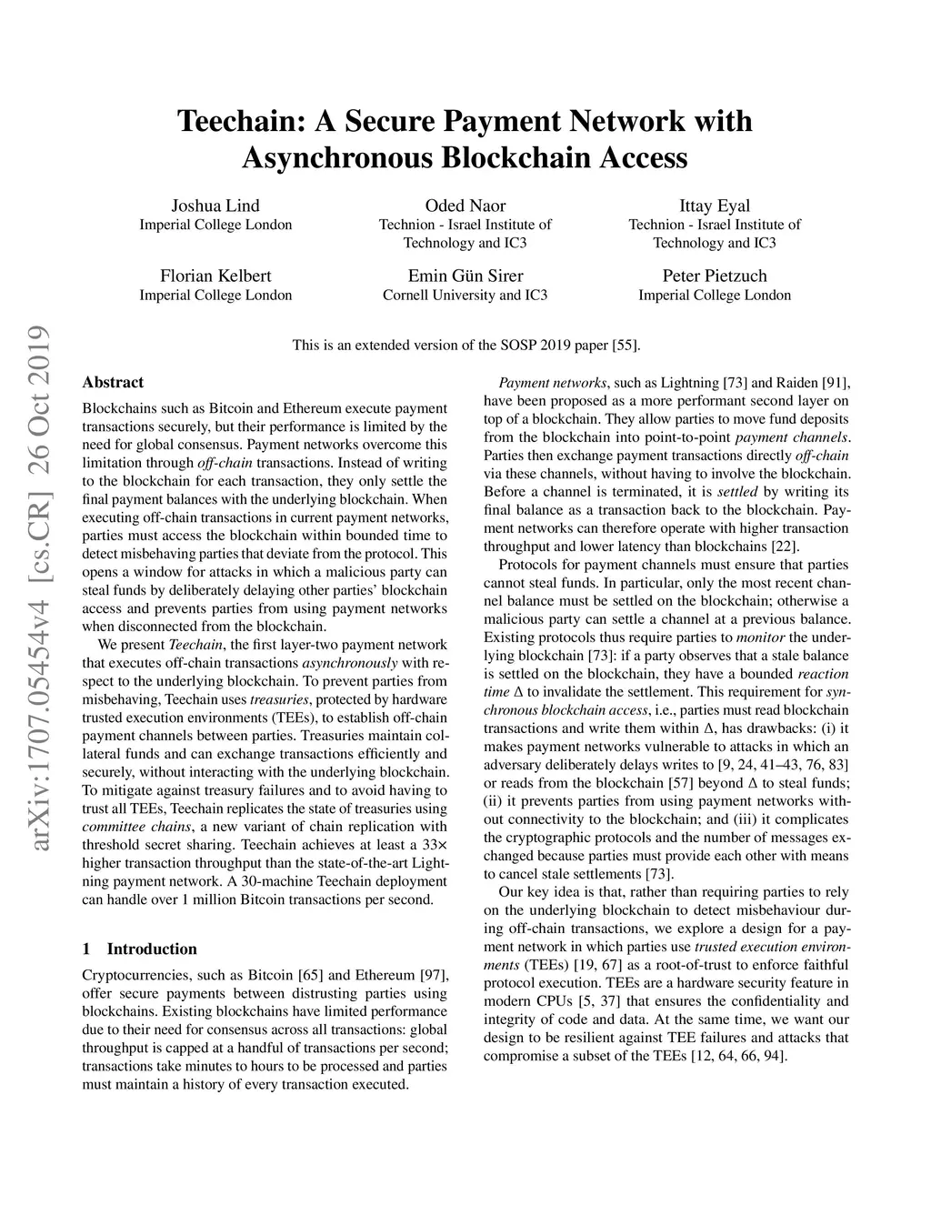 Teechain: A Secure Payment Network with Asynchronous Blockchain Access