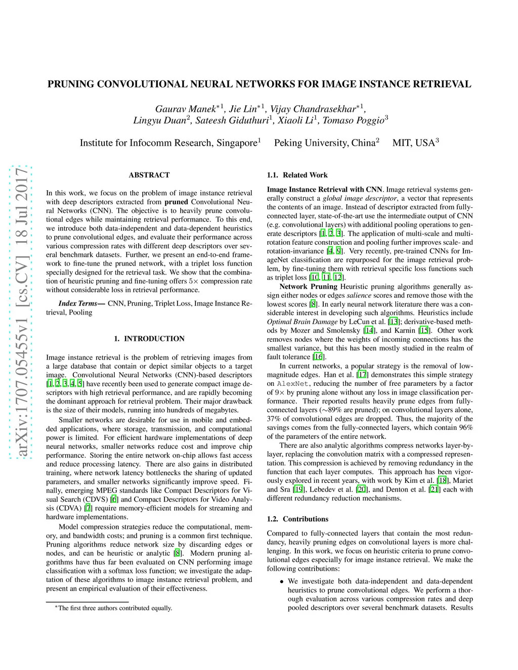 Pruning Convolutional Neural Networks for Image Instance Retrieval