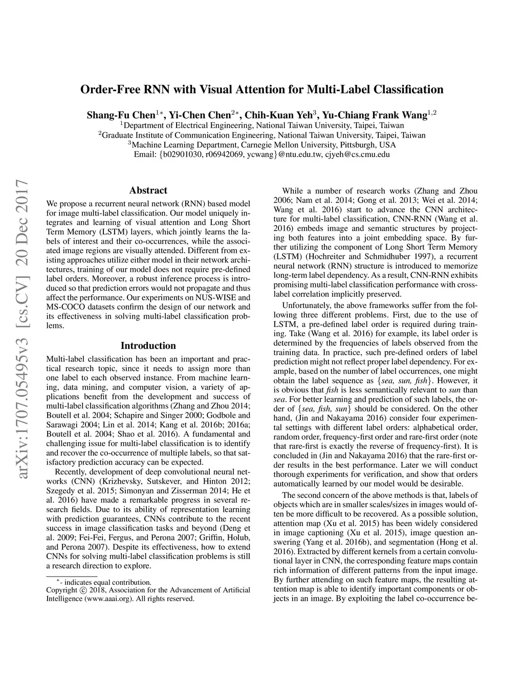 Order-Free RNN with Visual Attention for Multi-Label Classification