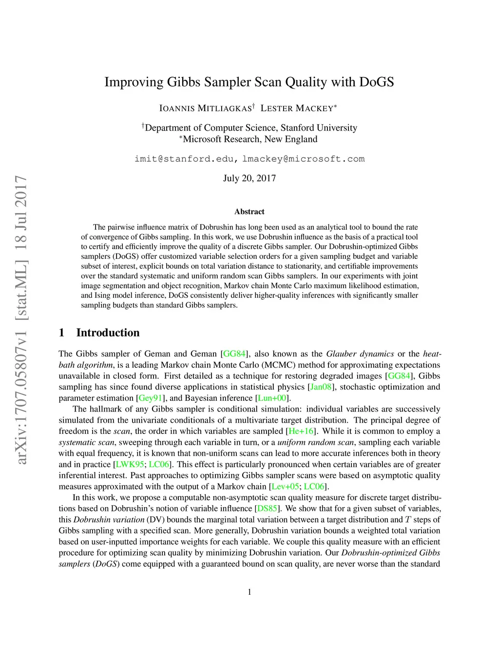 The pairwise influence matrix of Dobrushin has long been used as an analytical tool to bound the rate of convergence of Gibbs sampling. In this work, we use Dobrushin influence as the basis of a practical tool to certify and efficiently improve the quality of a discrete Gibbs sampler. Our Dobrushin-optimized Gibbs samplers (DoGS) offer customized variable selection orders for a given sampling budget and variable subset of interest, explicit bounds on total variation distance to stationarity, and certifiable improvements over the standard systematic and uniform random scan Gibbs samplers. In our experiments with joint image segmentation and object recognition, Markov chain Monte Carlo maximum likelihood estimation, and Ising model inference, DoGS consistently deliver higher-quality inferences with significantly smaller sampling budgets than standard Gibbs samplers.