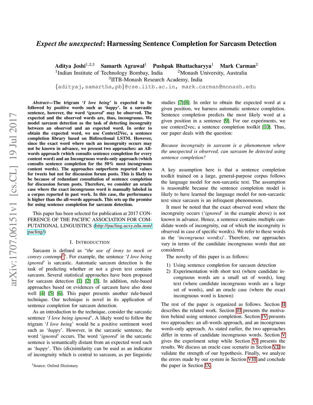 Expect the unexpected: Harnessing Sentence Completion for Sarcasm