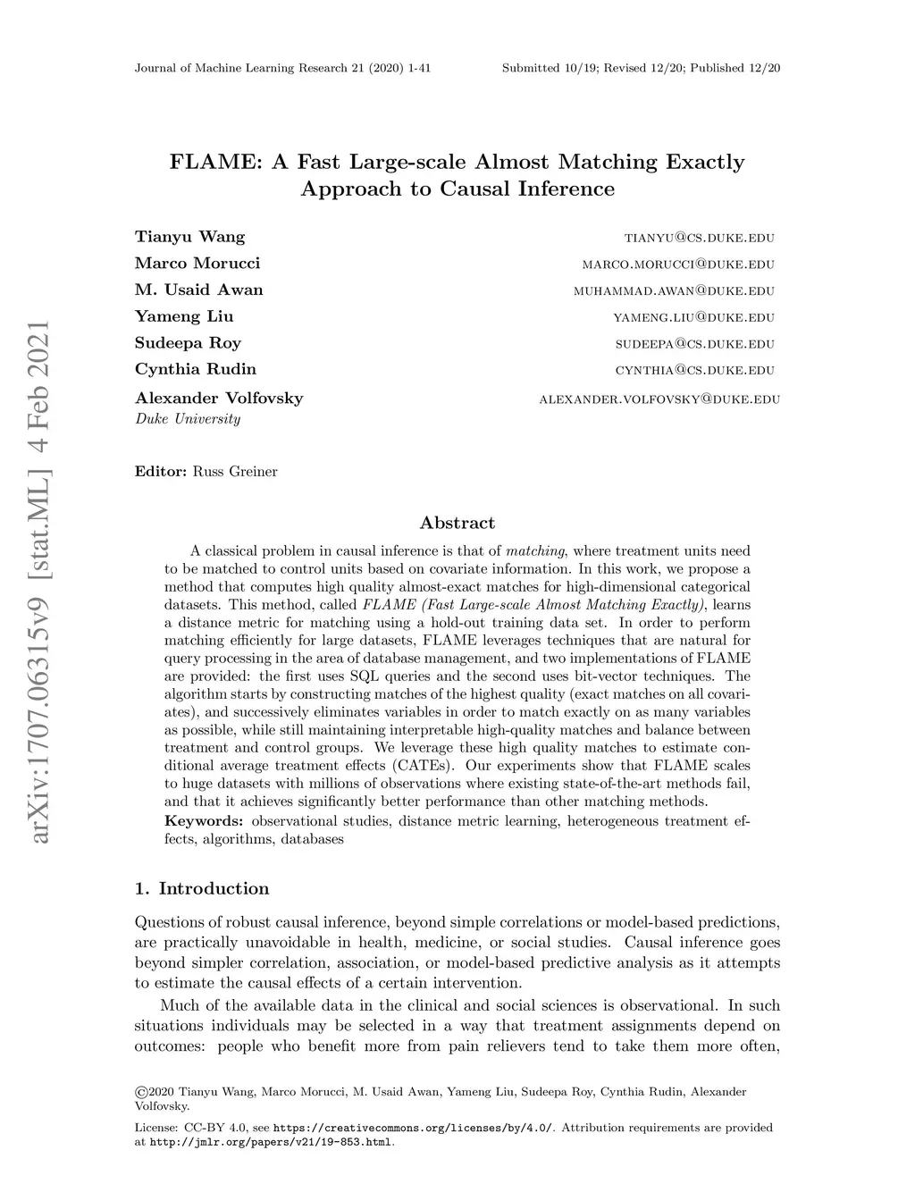 FLAME: A Fast Large-scale Almost Matching Exactly Approach to Causal