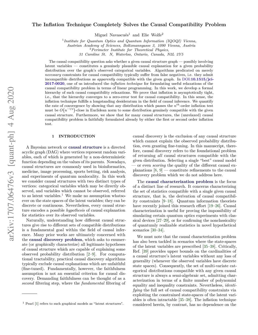 The causal compatibility question asks whether a given causal structure graph -- possibly involving latent variables -- constitutes a genuinely plausible causal explanation for a given probability distribution over the graph's observed variables. Algorithms predicated on merely necessary constraints for causal compatibility typically suffer from false negatives, i.e. they admit incompatible distributions as apparently compatible with the given graph. In [arXiv:1609.00672], one of us introduced the inflation technique for formulating useful relaxations of the causal compatibility problem in terms of linear programming. In this work, we develop a formal hierarchy of such causal compatibility relaxations. We prove that inflation is asymptotically tight, i.e., that the hierarchy converges to a zero-error test for causal compatibility. In this sense, the inflation technique fulfills a longstanding desideratum in the field of causal inference. We quantify the rate of convergence by showing that any distribution which passes the -order inflation test must be -close in Euclidean norm to some distribution genuinely compatible with the given causal structure. Furthermore, we show that for many causal structures, the (unrelaxed) causal compatibility problem is faithfully formulated already by either the first or second order inflation test.