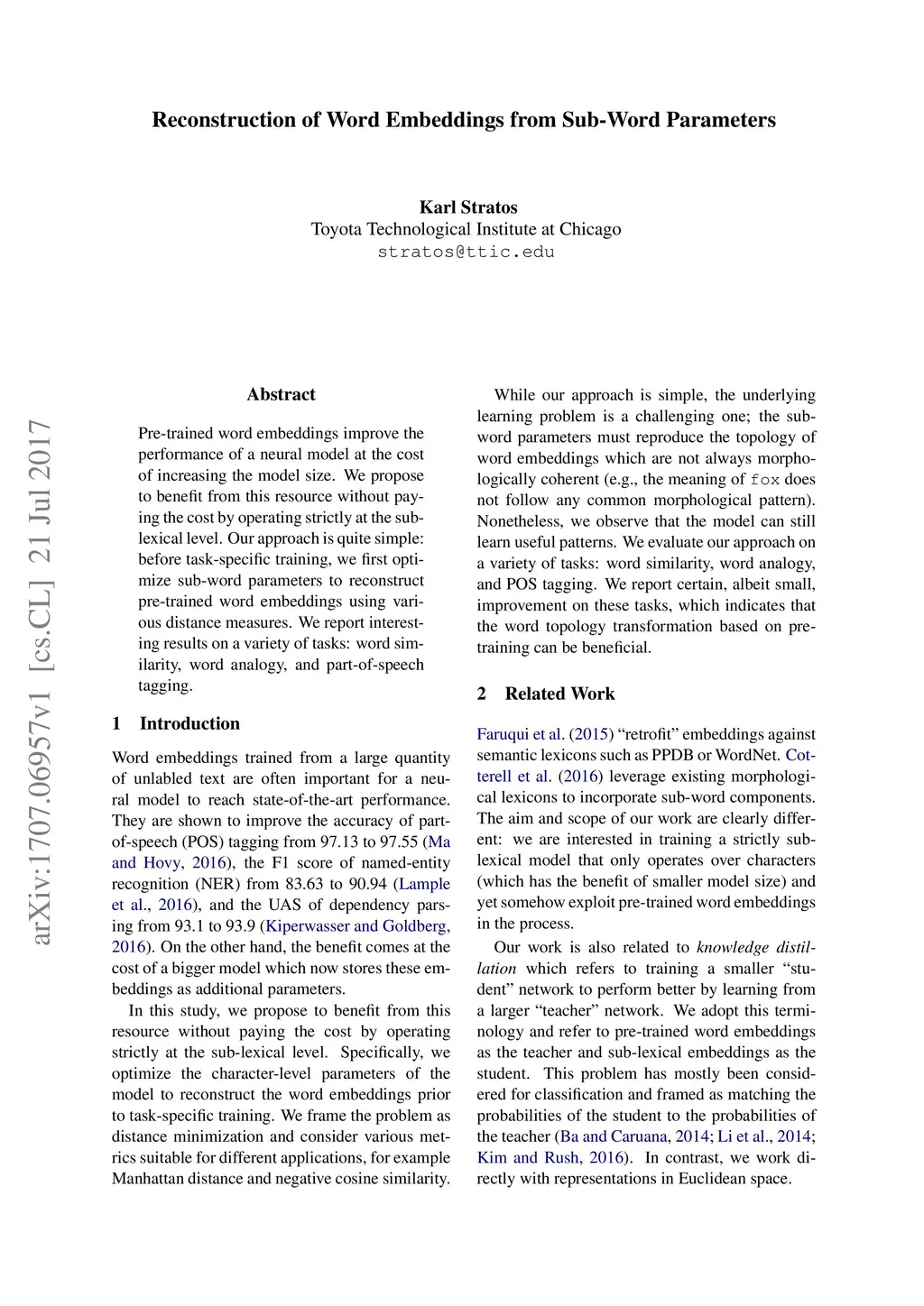 Reconstruction of Word Embeddings from Sub-Word Parameters