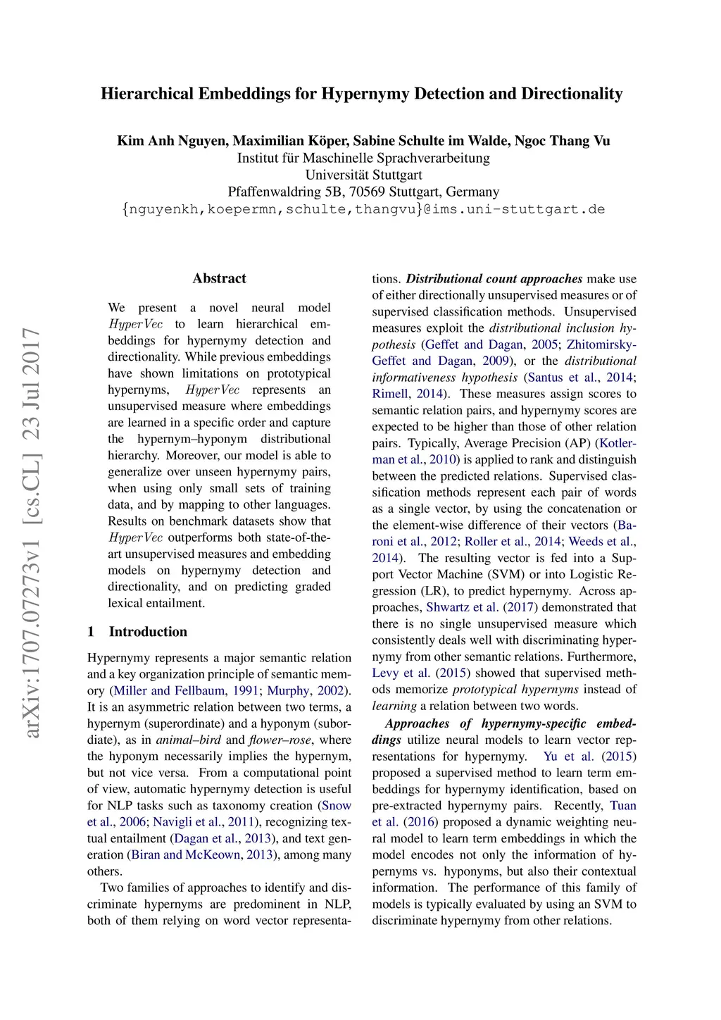 Hierarchical Embeddings for Hypernymy Detection and Directionality