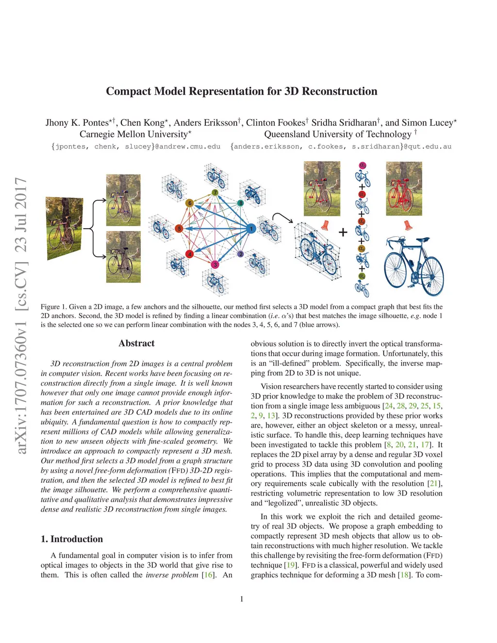 3D reconstruction from 2D images is a central problem in computer vision. Recent works have been focusing on reconstruction directly from a single image. It is well known however that only one image cannot provide enough information for such a reconstruction. A prior knowledge that has been entertained are 3D CAD models due to its online ubiquity. A fundamental question is how to compactly represent millions of CAD models while allowing generalization to new unseen objects with fine-scaled geometry. We introduce an approach to compactly represent a 3D mesh. Our method first selects a 3D model from a graph structure by using a novel free-form deformation FFD 3D-2D registration, and then the selected 3D model is refined to best fit the image silhouette. We perform a comprehensive quantitative and qualitative analysis that demonstrates impressive dense and realistic 3D reconstruction from single images.