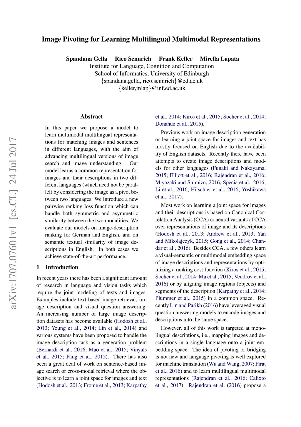 Image Pivoting for Learning Multilingual Multimodal Representations