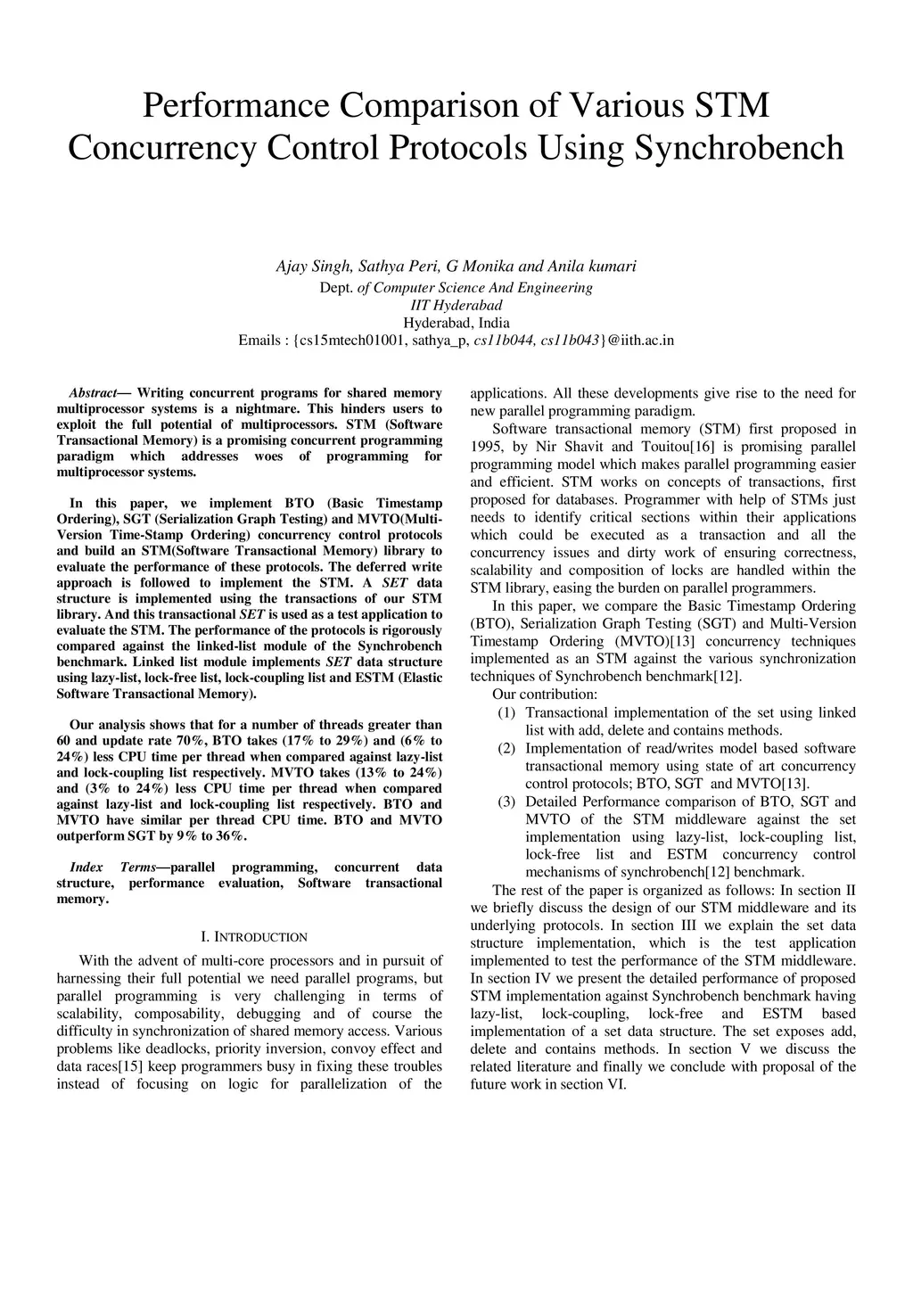 Performance Comparison of Various STM Concurrency Control Protocols