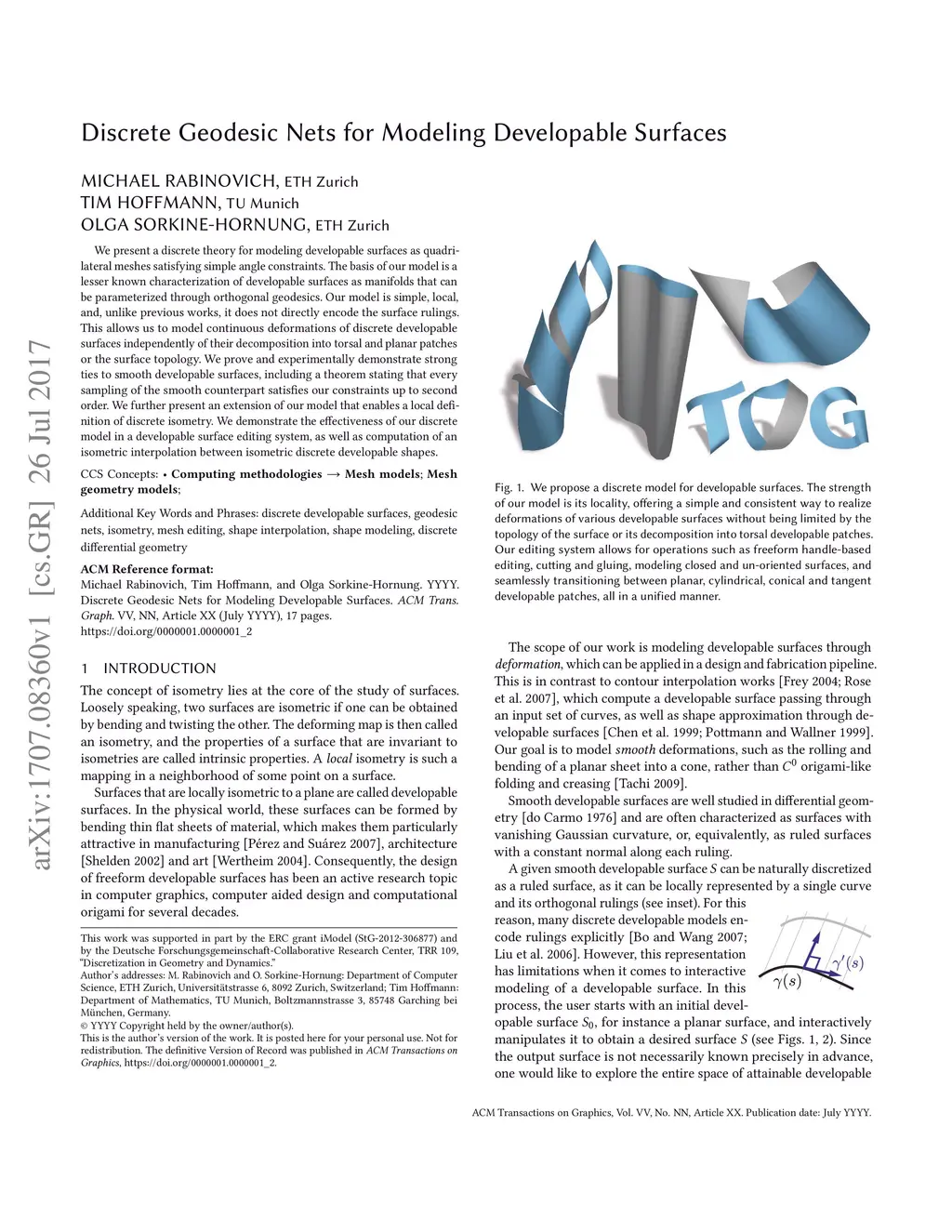 Discrete Geodesic Nets for Modeling Developable Surfaces