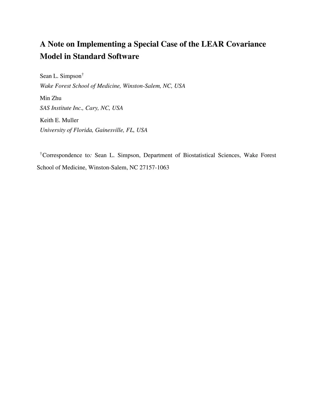 A Note on Implementing a Special Case of the LEAR Covariance Model in