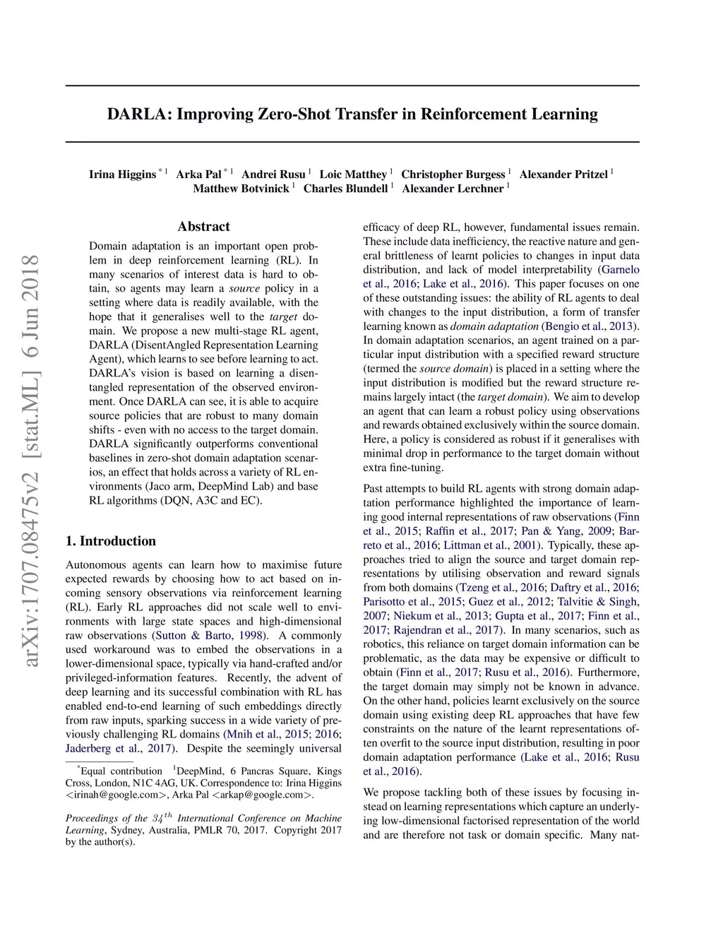 DARLA: Improving Zero-Shot Transfer in Reinforcement Learning