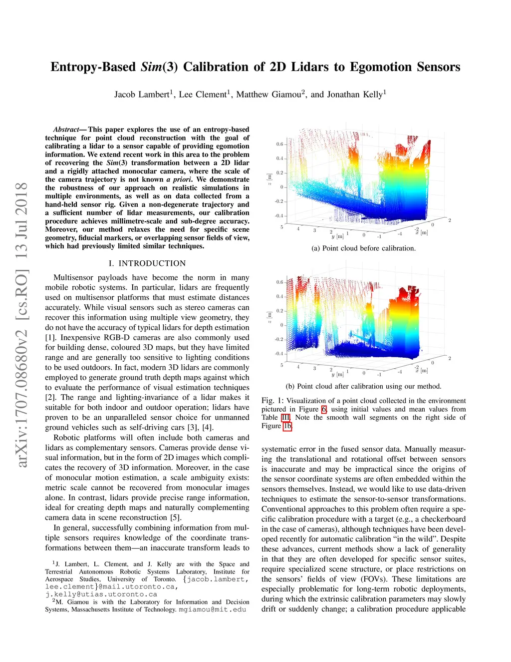 Entropy-Based Calibration of 2D Lidars to Egomotion Sensors