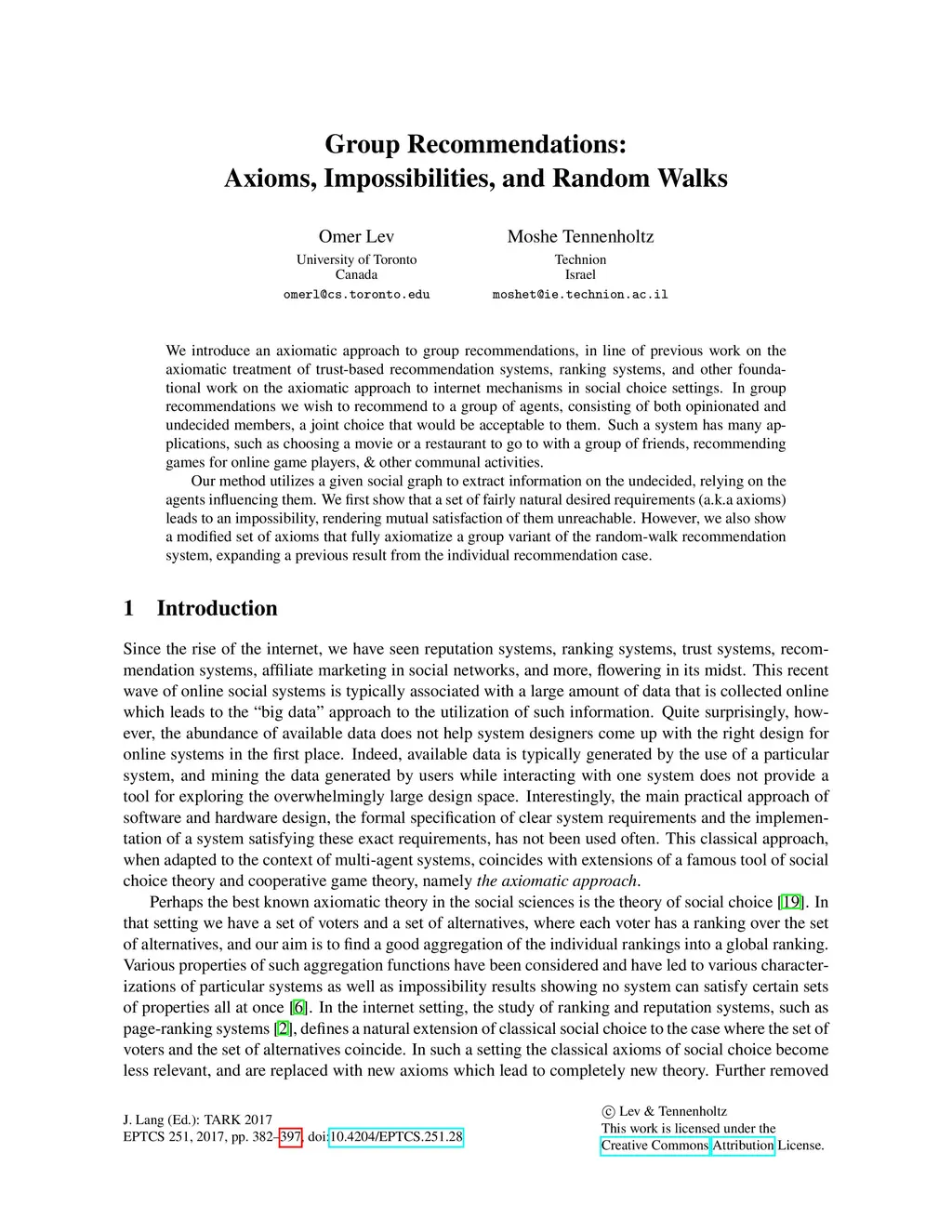 Group Recommendations: Axioms, Impossibilities, and Random Walks