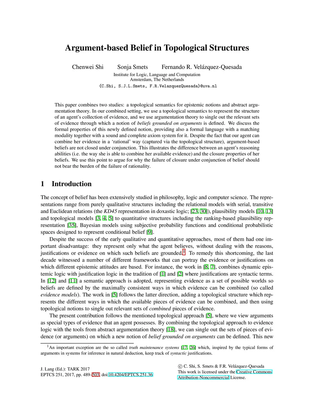 Argument-based Belief in Topological Structures