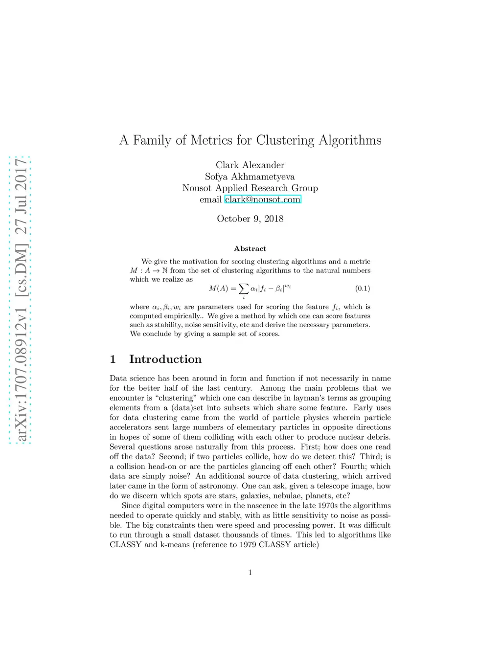 A Family of Metrics for Clustering Algorithms