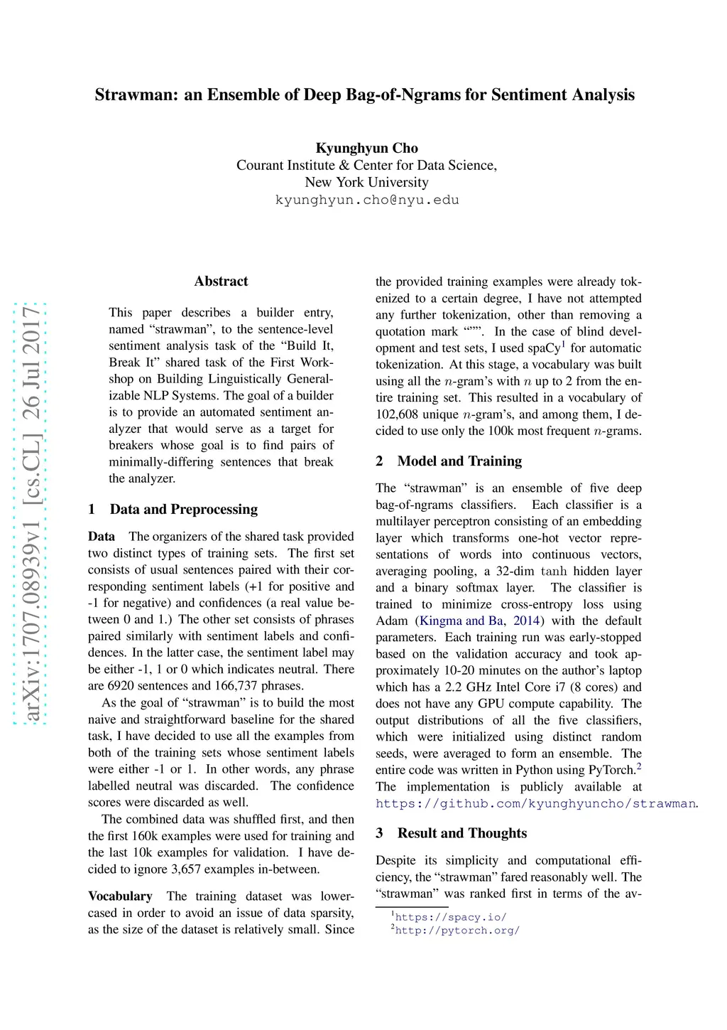 Strawman: an Ensemble of Deep Bag-of-Ngrams for Sentiment Analysis