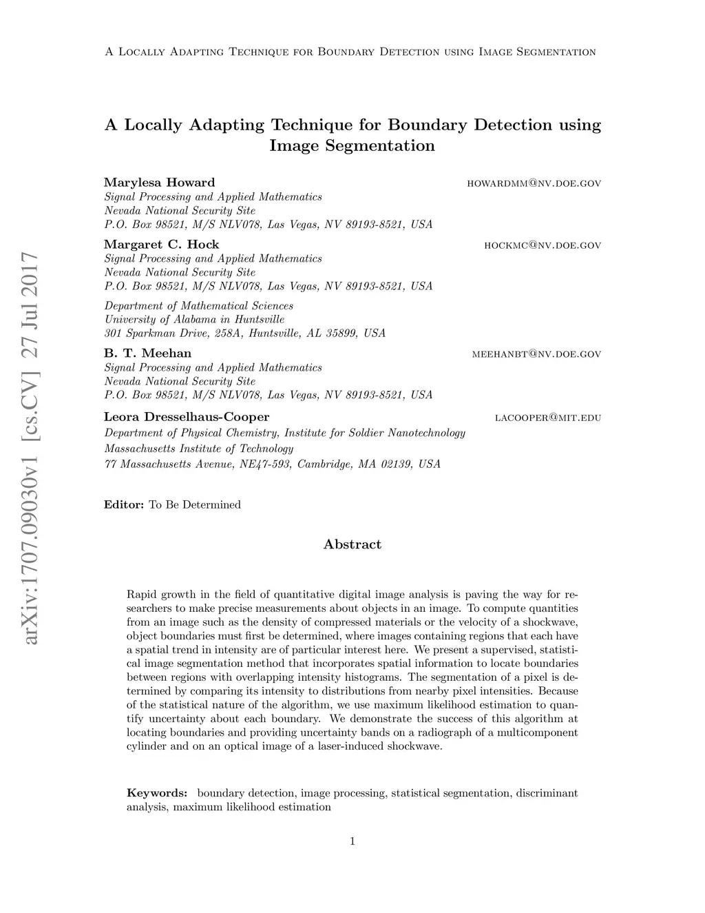 A Locally Adapting Technique for Boundary Detection using Image