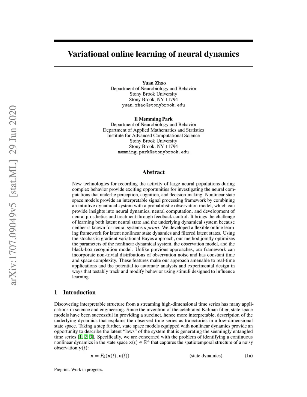 Variational online learning of neural dynamics