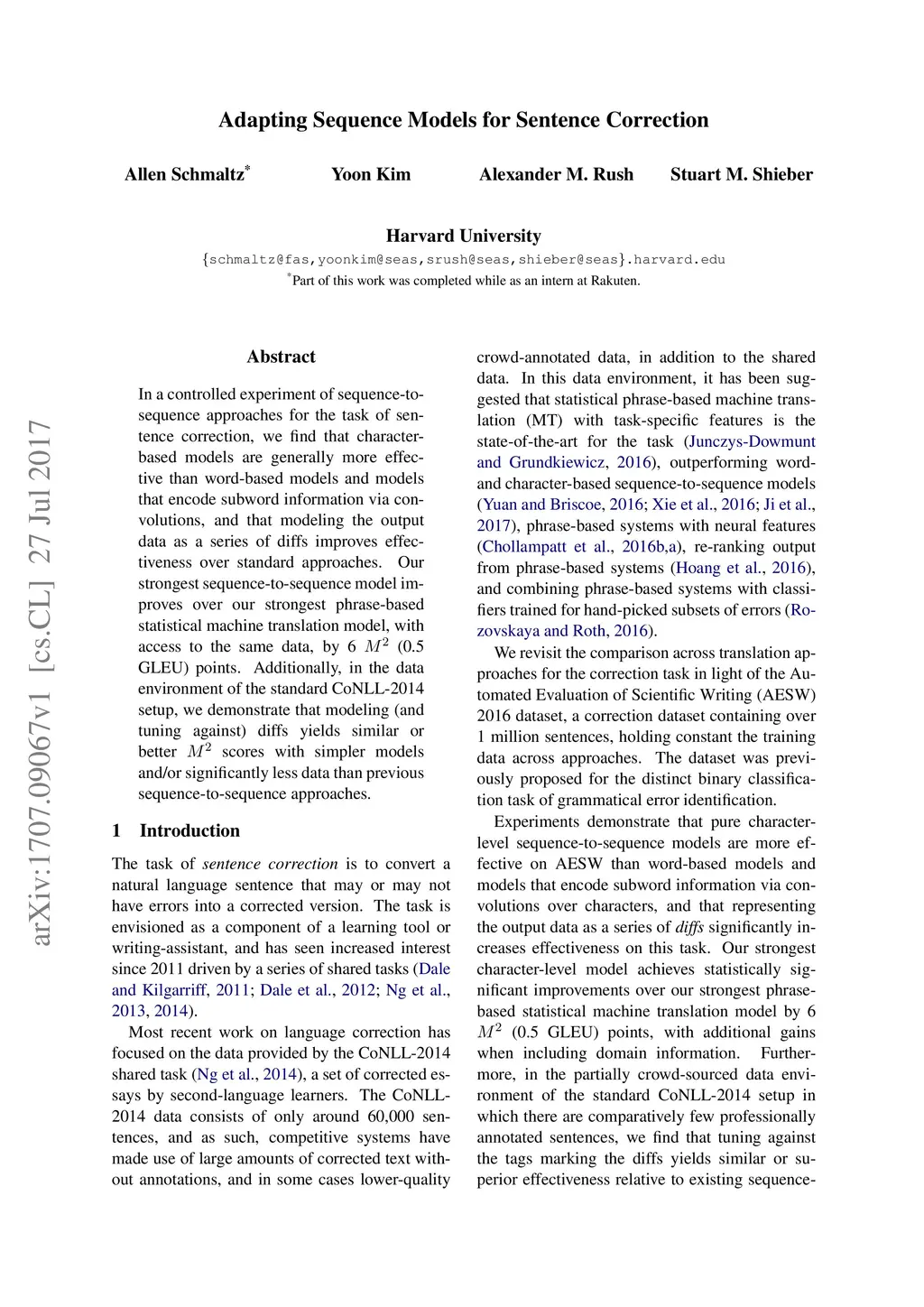 Adapting Sequence Models for Sentence Correction