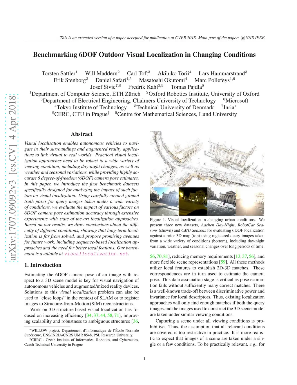 Benchmarking 6DOF Outdoor Visual Localization in Changing Conditions