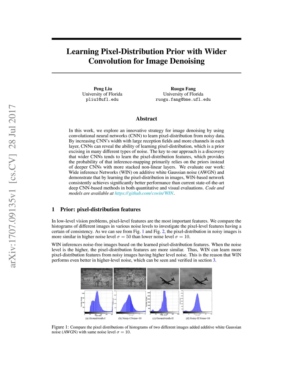 In this work, we explore an innovative strategy for image denoising by using convolutional neural networks (CNN) to learn pixel-distribution from noisy data. By increasing CNN's width with large reception fields and more channels in each layer, CNNs can reveal the ability to learn pixel-distribution, which is a prior existing in many different types of noise. The key to our approach is a discovery that wider CNNs tends to learn the pixel-distribution features, which provides the probability of that inference-mapping primarily relies on the priors instead of deeper CNNs with more stacked nonlinear layers. We evaluate our work: Wide inference Networks (WIN) on additive white Gaussian noise (AWGN) and demonstrate that by learning the pixel-distribution in images, WIN-based network consistently achieves significantly better performance than current state-of-the-art deep CNN-based methods in both quantitative and visual evaluations. \textit{Code and models are available at \url{https://github.com/cswin/WIN}}.