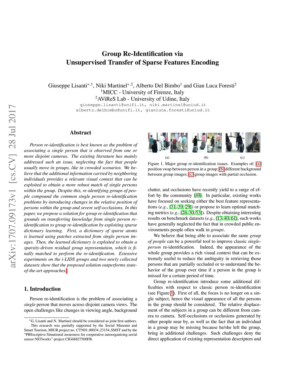 Group Re-Identification via Unsupervised Transfer of Sparse Features