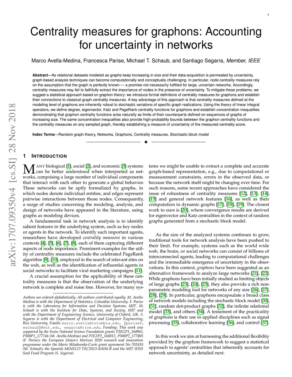 Centrality measures for graphons: Accounting for uncertainty in networks