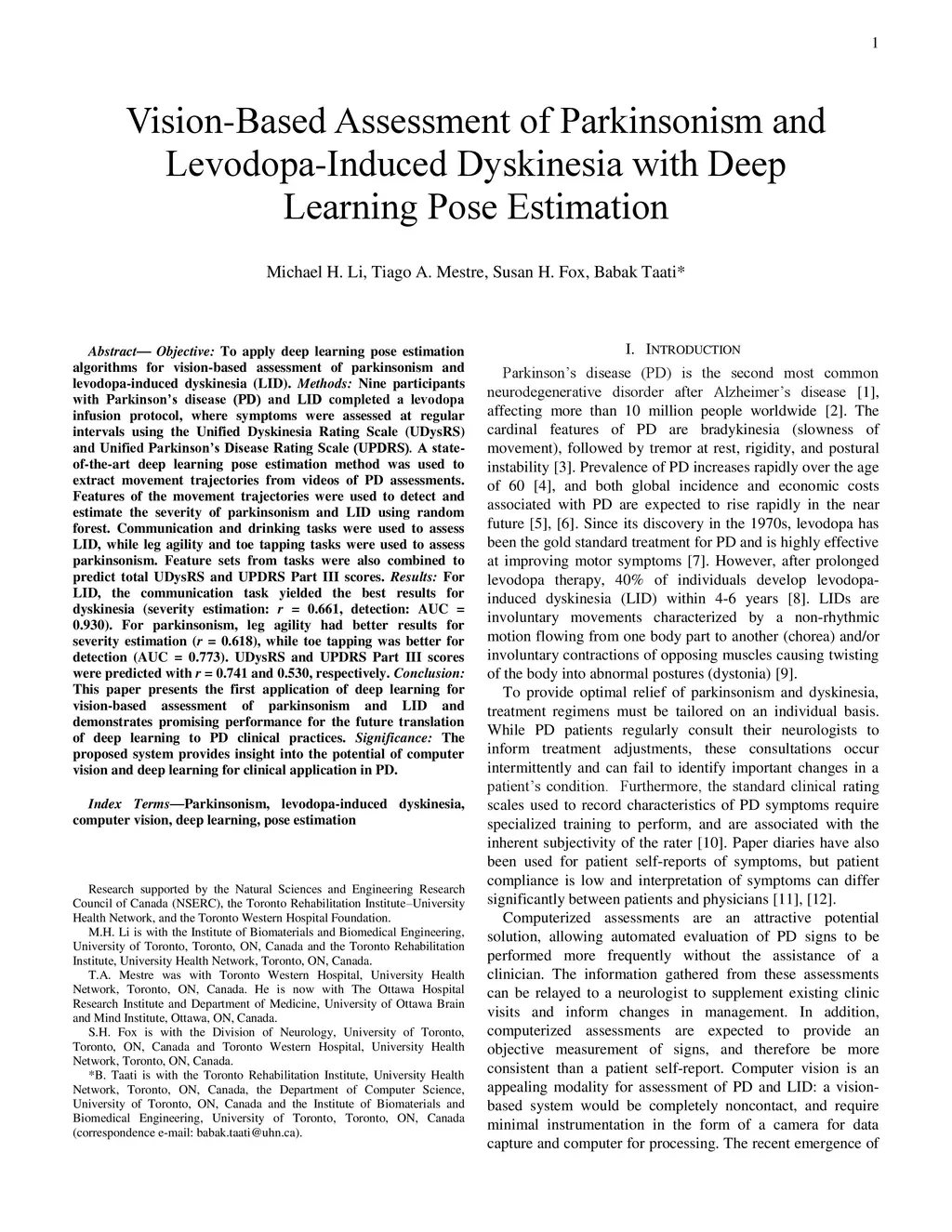 Vision-Based Assessment of Parkinsonism and Levodopa-Induced Dyskinesia