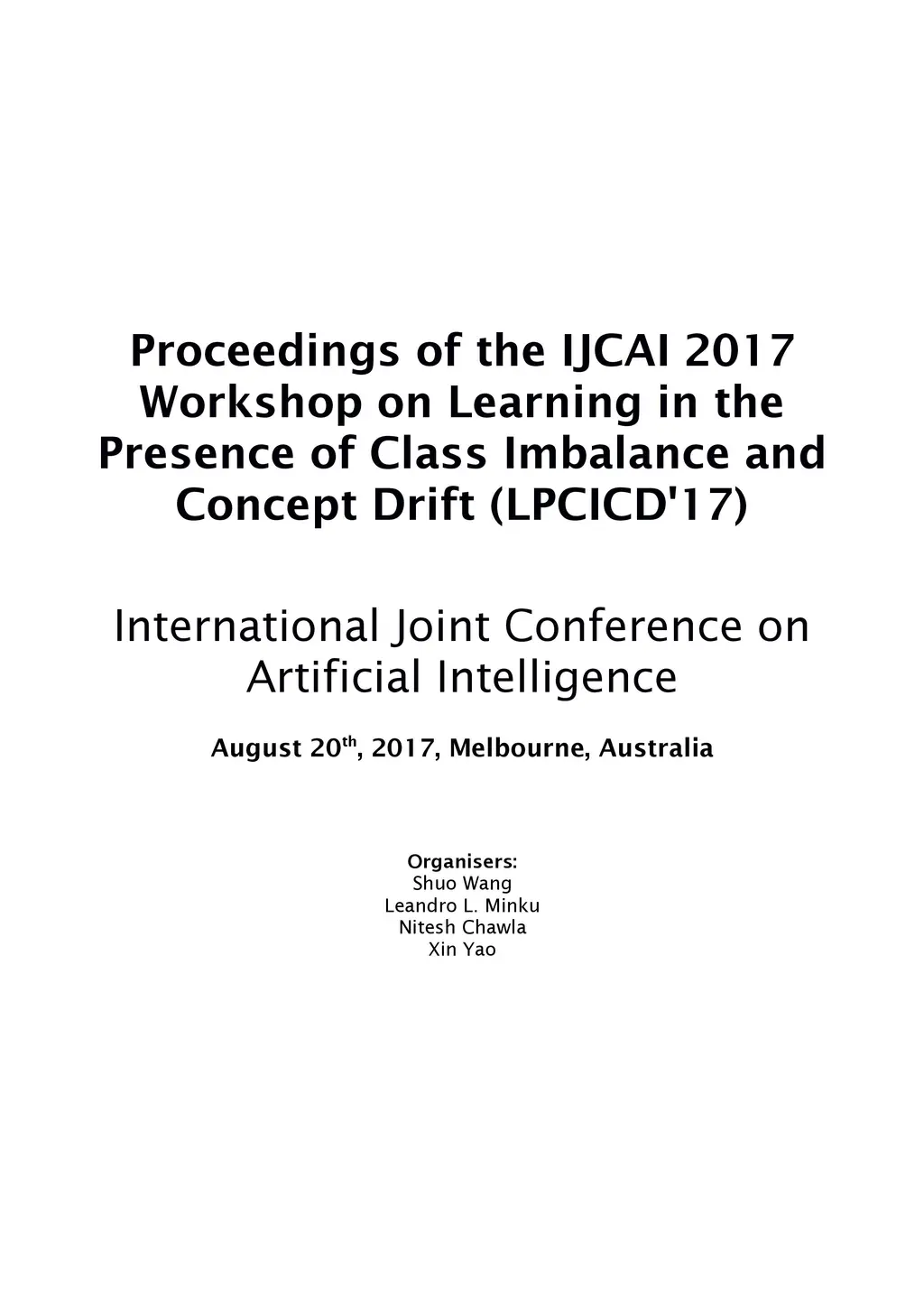 With the wide application of machine learning algorithms to the real world, class imbalance and concept drift have become crucial learning issues. Class imbalance happens when the data categories are not equally represented, i.e., at least one category is minority compared to other categories. It can cause learning bias towards the majority class and poor generalization. Concept drift is a change in the underlying distribution of the problem, and is a significant issue specially when learning from data streams. It requires learners to be adaptive to dynamic changes. Class imbalance and concept drift can significantly hinder predictive performance, and the problem becomes particularly challenging when they occur simultaneously. This challenge arises from the fact that one problem can affect the treatment of the other. For example, drift detection algorithms based on the traditional classification error may be sensitive to the imbalanced degree and become less effective; and class imbalance techniques need to be adaptive to changing imbalance rates, otherwise the class receiving the preferential treatment may not be the correct minority class at the current moment. Therefore, the mutual effect of class imbalance and concept drift should be considered during algorithm design. The aim of this workshop is to bring together researchers from the areas of class imbalance learning and concept drift in order to encourage discussions and new collaborations on solving the combined issue of class imbalance and concept drift. It provides a forum for international researchers and practitioners to share and discuss their original work on addressing new challenges and research issues in class imbalance learning, concept drift, and the combined issues of class imbalance and concept drift. The proceedings include 8 papers on these topics.