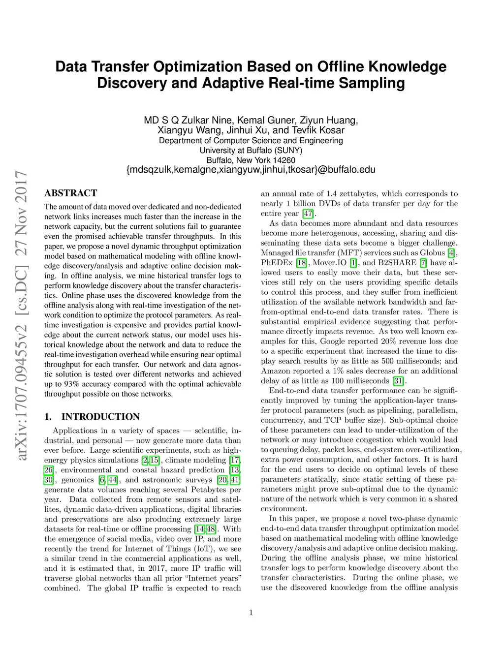 Data Transfer Optimization Based on Offline Knowledge Discovery and