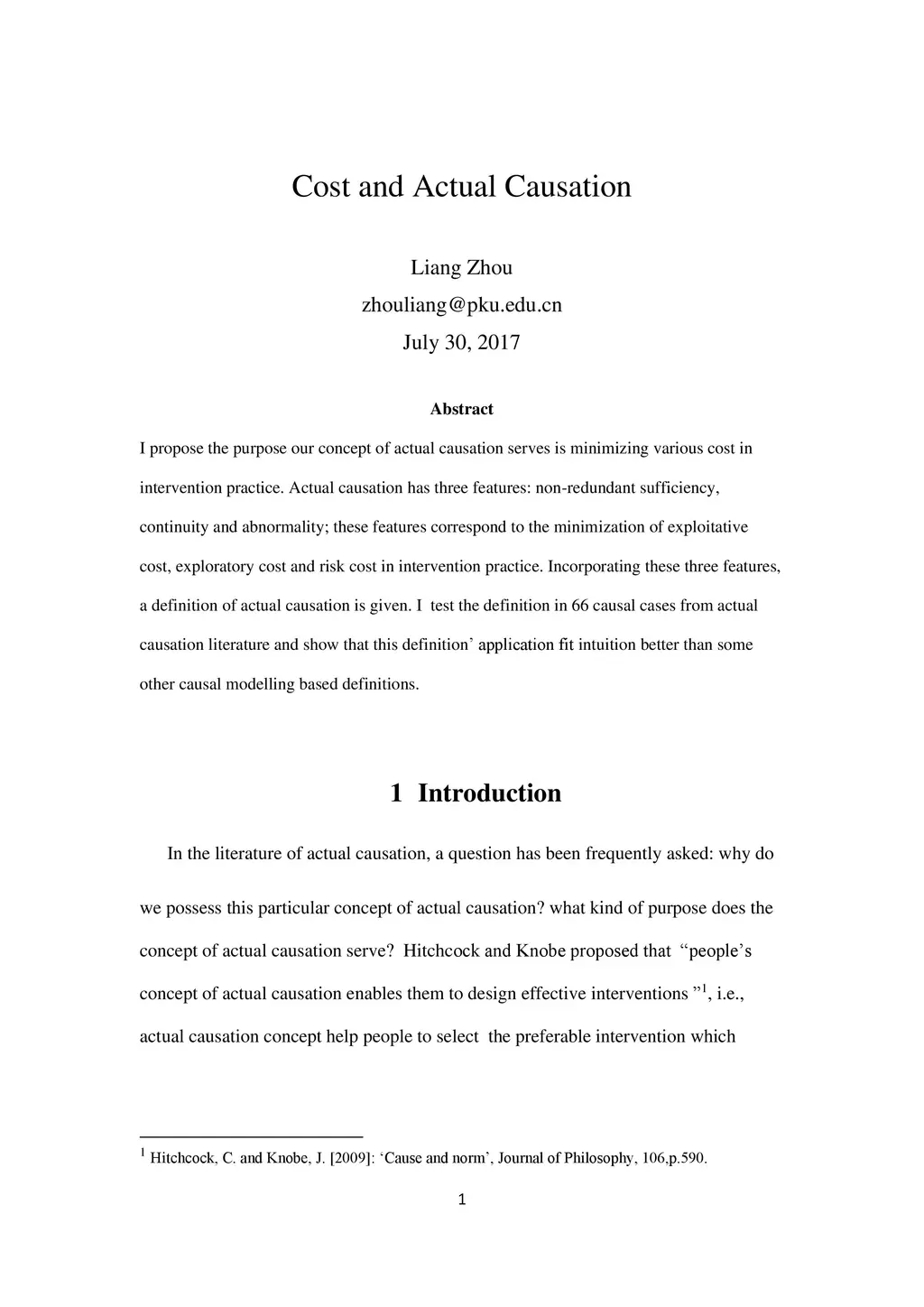 Cost and Actual Causation
