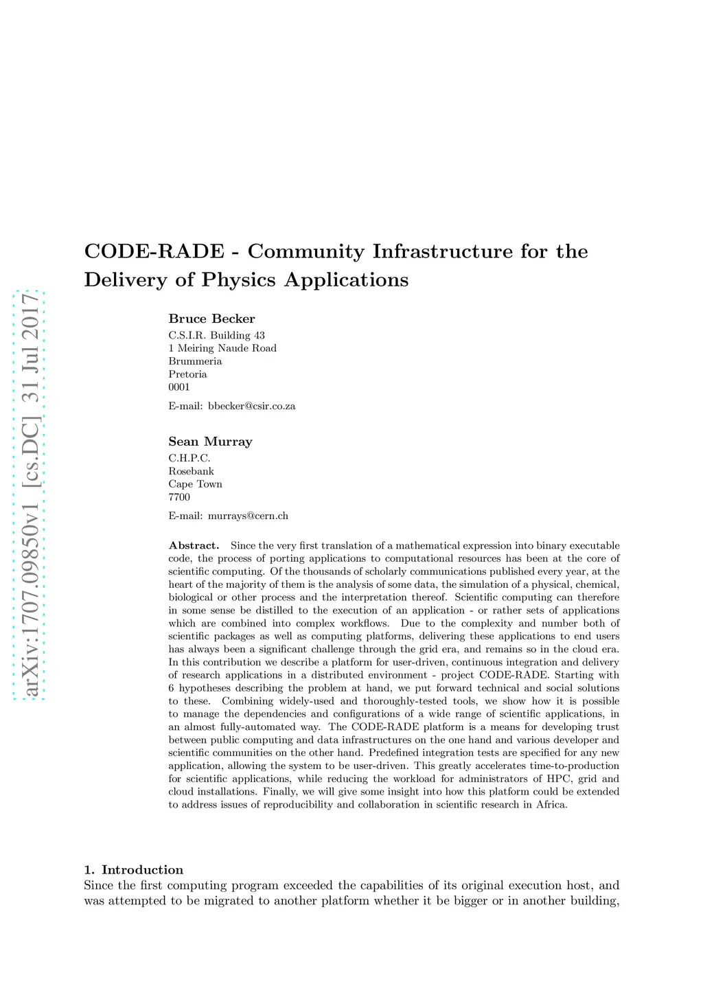 CODE-RADE - Community Infrastructure for the Delivery of Physics