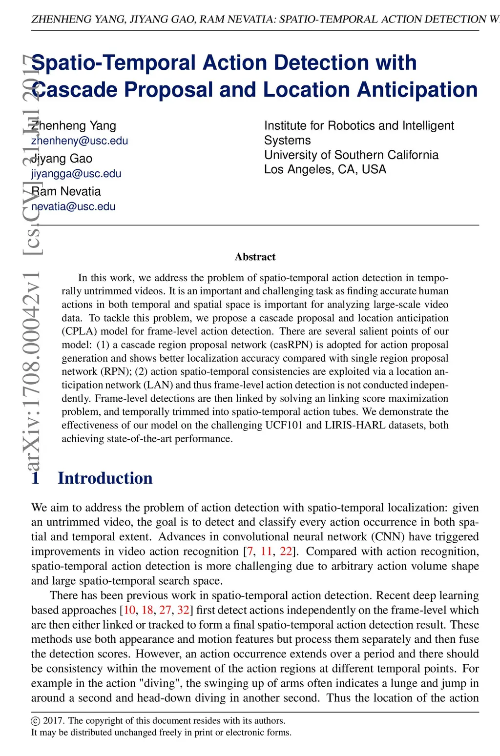 Spatio-Temporal Action Detection with Cascade Proposal and Location