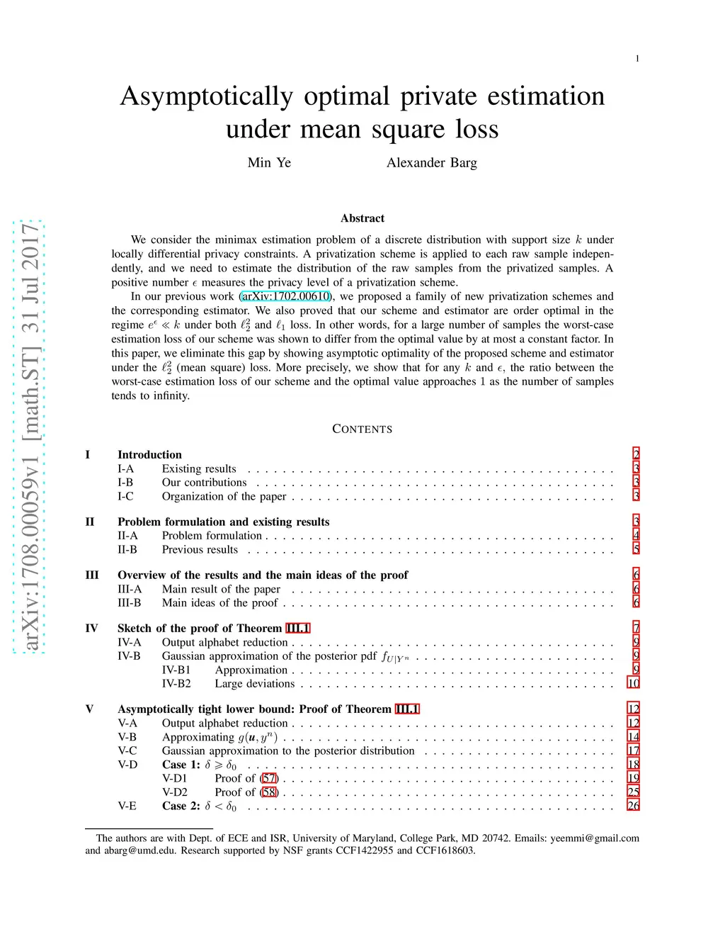 We consider the minimax estimation problem of a discrete distribution with support size under locally differential privacy constraints. A privatization scheme is applied to each raw sample independently, and we need to estimate the distribution of the raw samples from the privatized samples. A positive number measures the privacy level of a privatization scheme. In our previous work (arXiv:1702.00610), we proposed a family of new privatization schemes and the corresponding estimator. We also proved that our scheme and estimator are order optimal in the regime under both and loss. In other words, for a large number of samples the worst-case estimation loss of our scheme was shown to differ from the optimal value by at most a constant factor. In this paper, we eliminate this gap by showing asymptotic optimality of the proposed scheme and estimator under the (mean square) loss. More precisely, we show that for any and the ratio between the worst-case estimation loss of our scheme and the optimal value approaches as the number of samples tends to infinity.